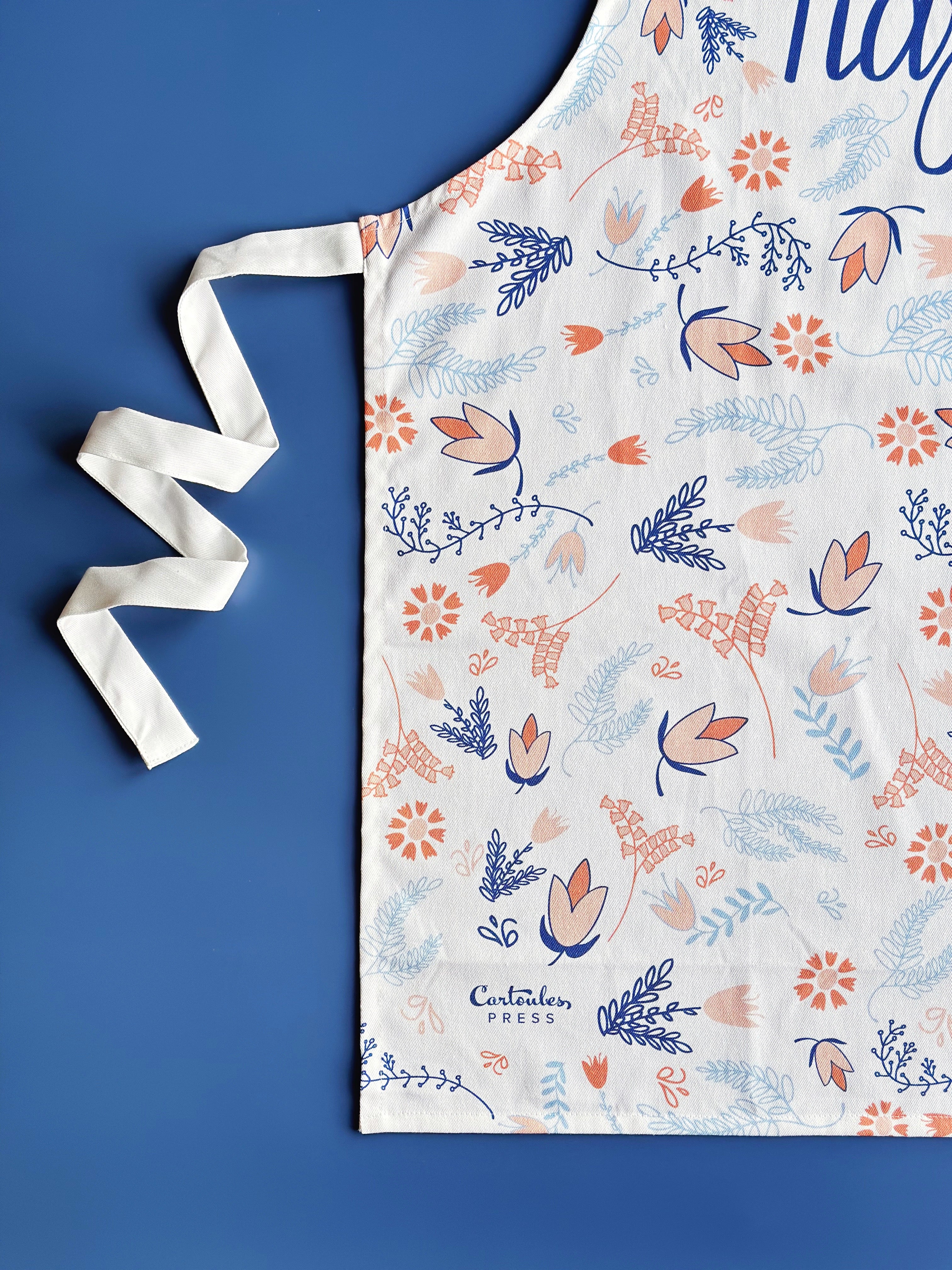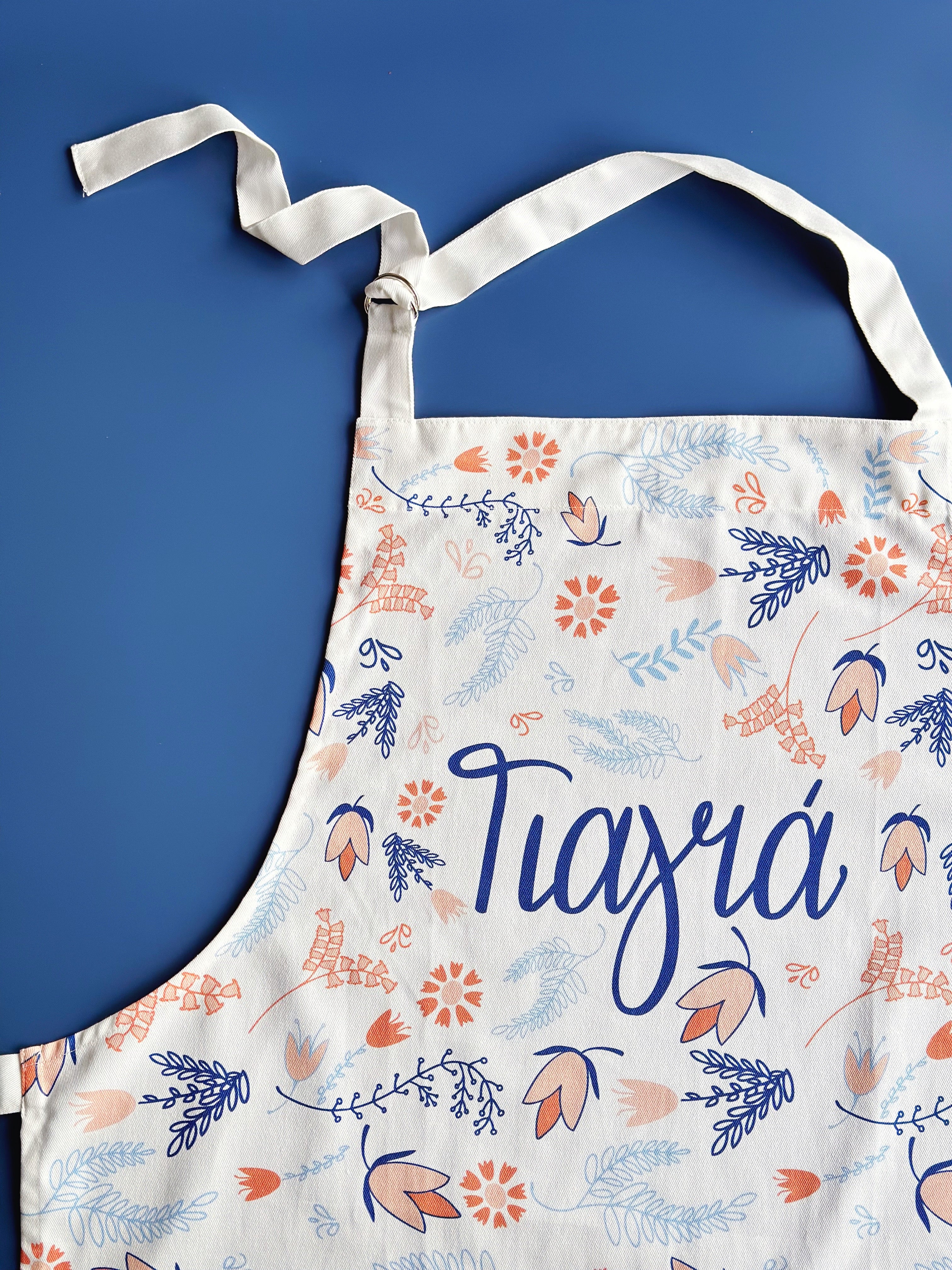 Gift Yiayia this apron, which features hand-illustrated elements and hand lettering by Cartoules Press. The text reads "Grandmother" in Greek. Our aprons are printed on 100% cotton premium twill fabric.