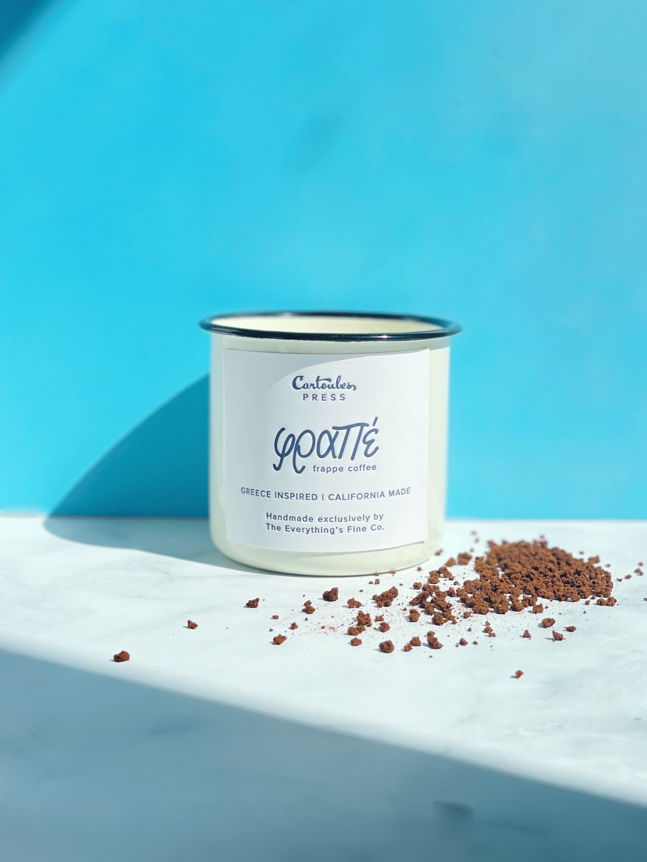 Ordering a Frappe coffee is the first thing we do when we land in Greece and get off the plane. There’s nothing more iconic. A frothy, iced coffee (shaken, not stirred). We like ours with milk and just a hint of sugar. Light this candle in the morning for Greece summer vibes all day.