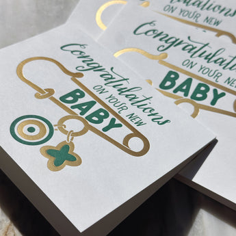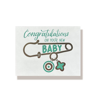 Commemorate the birth of a new baby and send your congratulations with this "filaxto" greeting card. In Greece, these "filaxto" religious charms are traditionally pinned to the clothes or crib of a baby to keep them safe by chasing away evil.