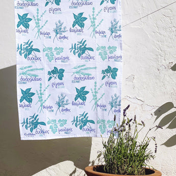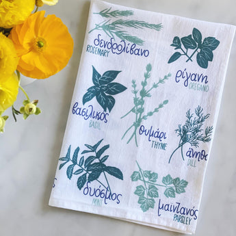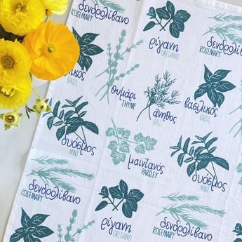19x28 Greek Herbs Tea Towel