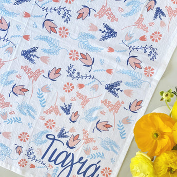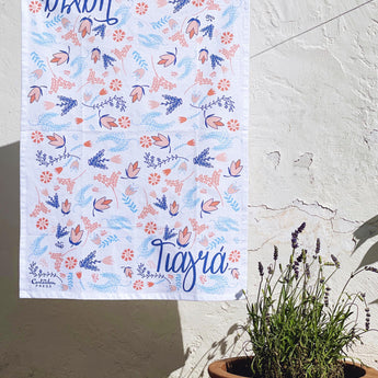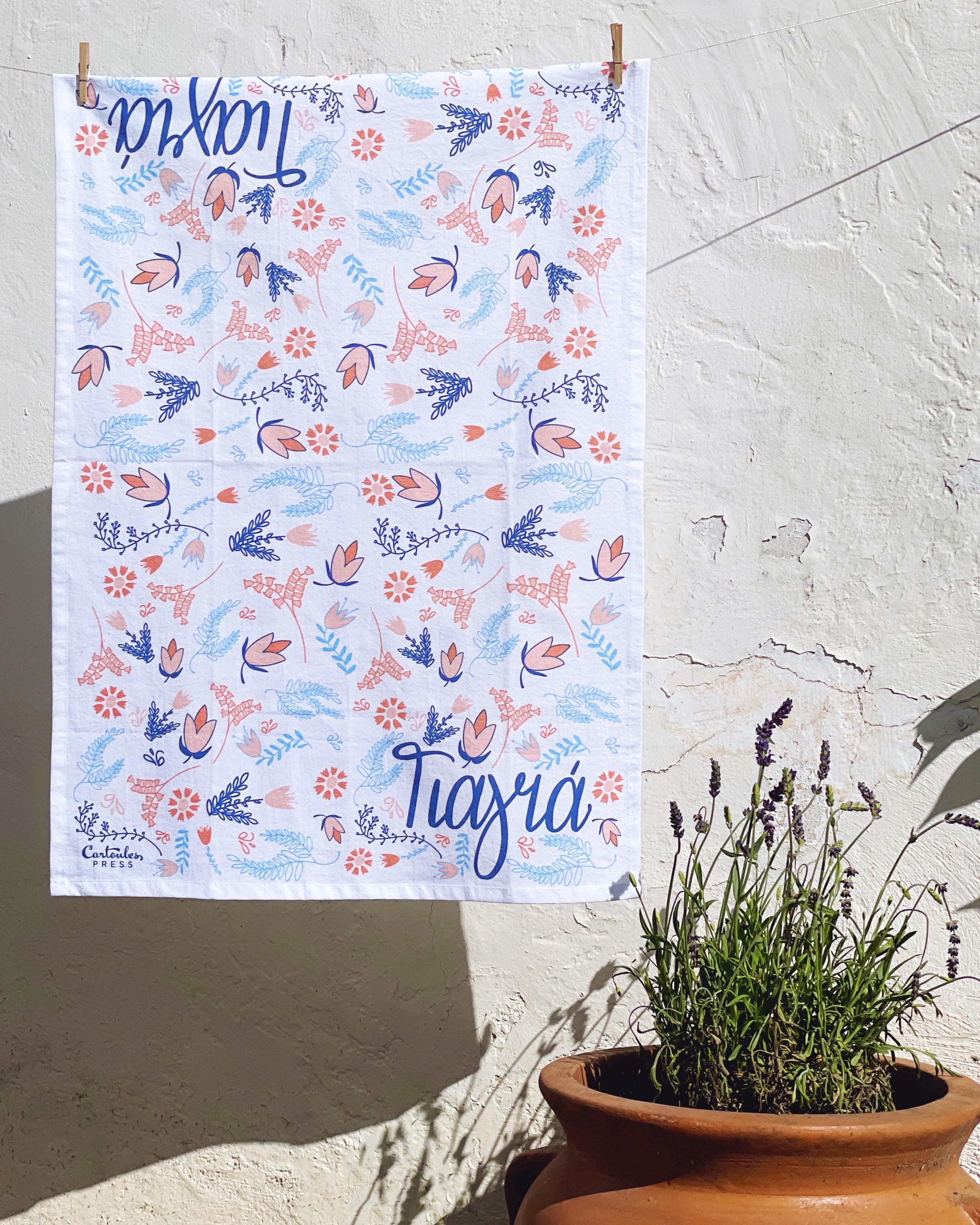 Gift Yiayia this tea towel, which features hand-illustrated elements and hand lettering by Cartoules Press. The text reads "Grandmother" in Greek.
