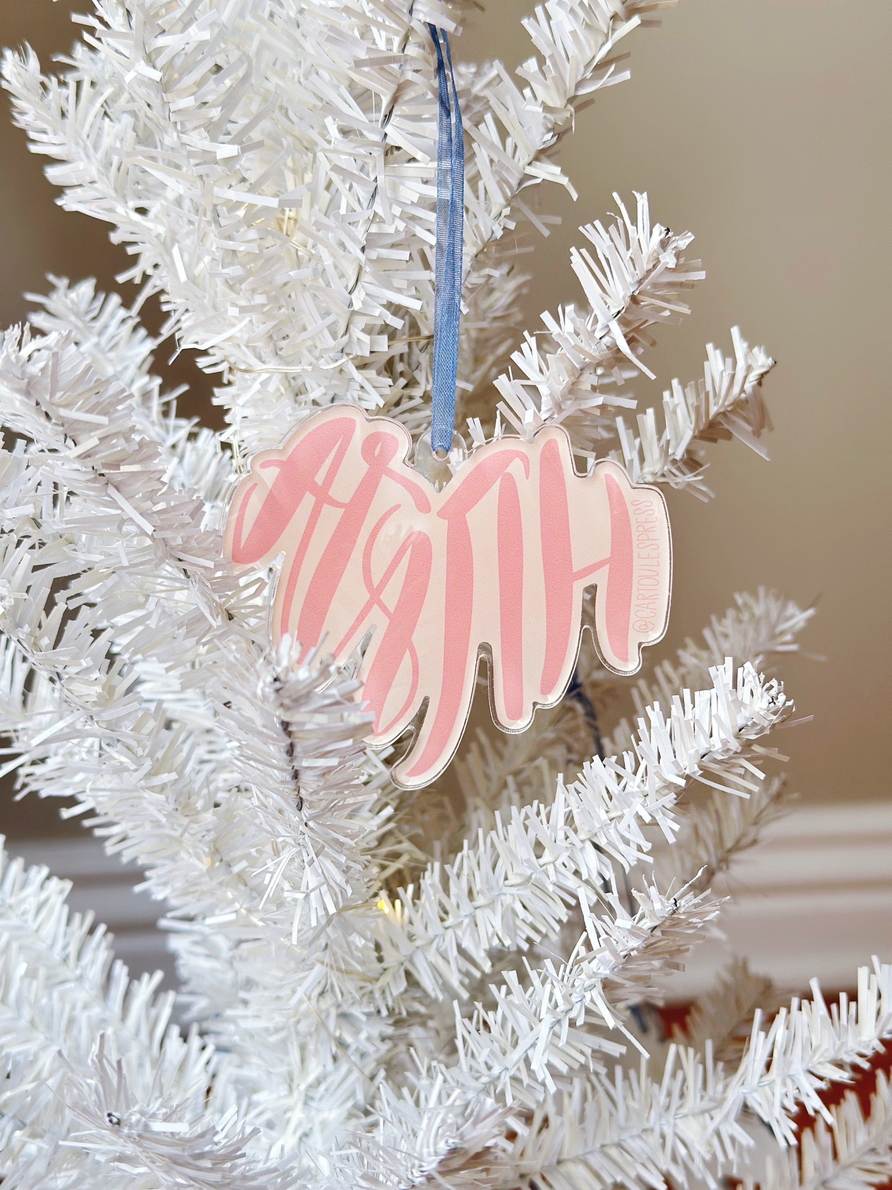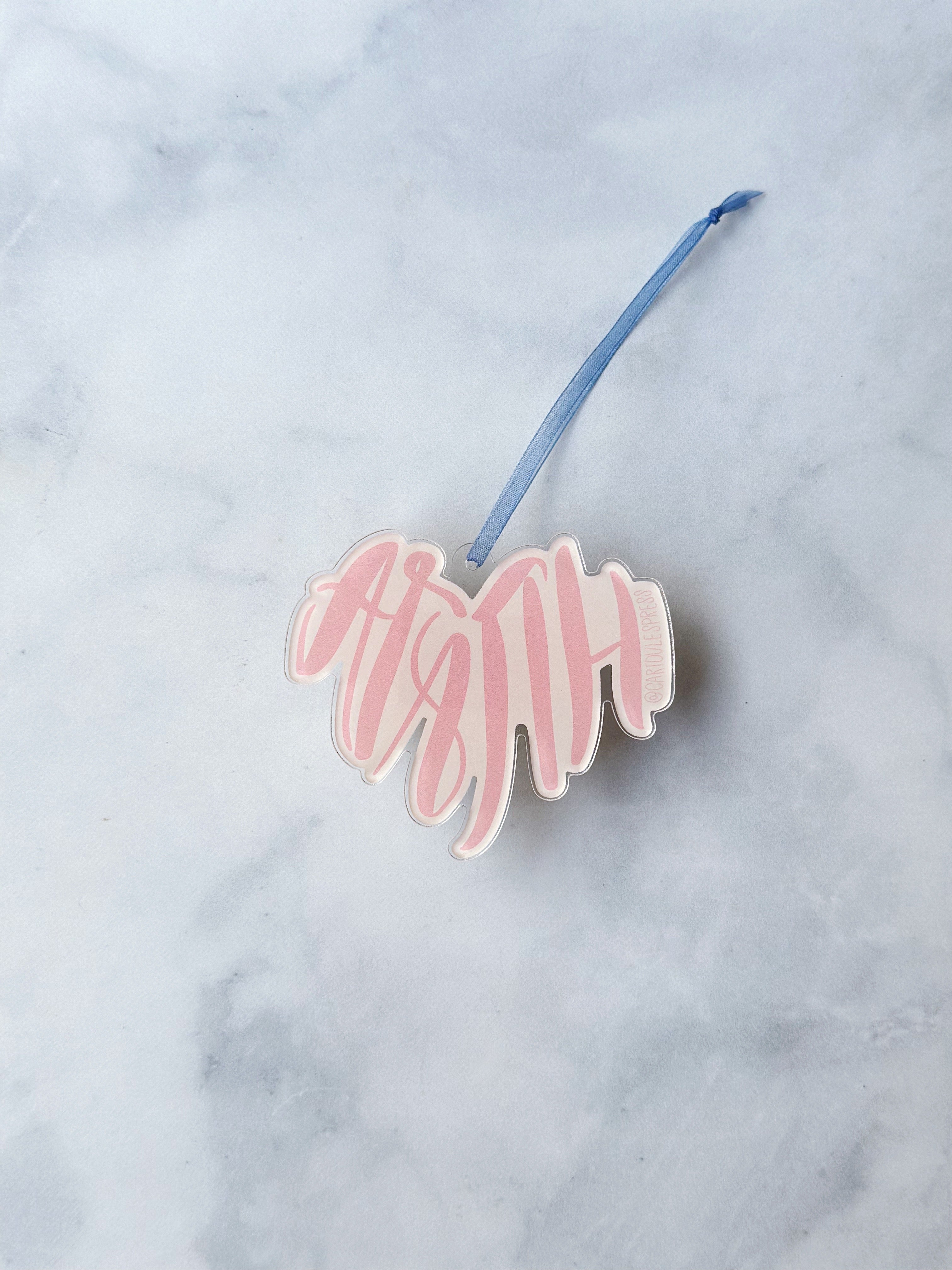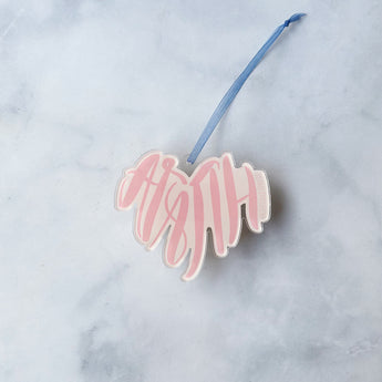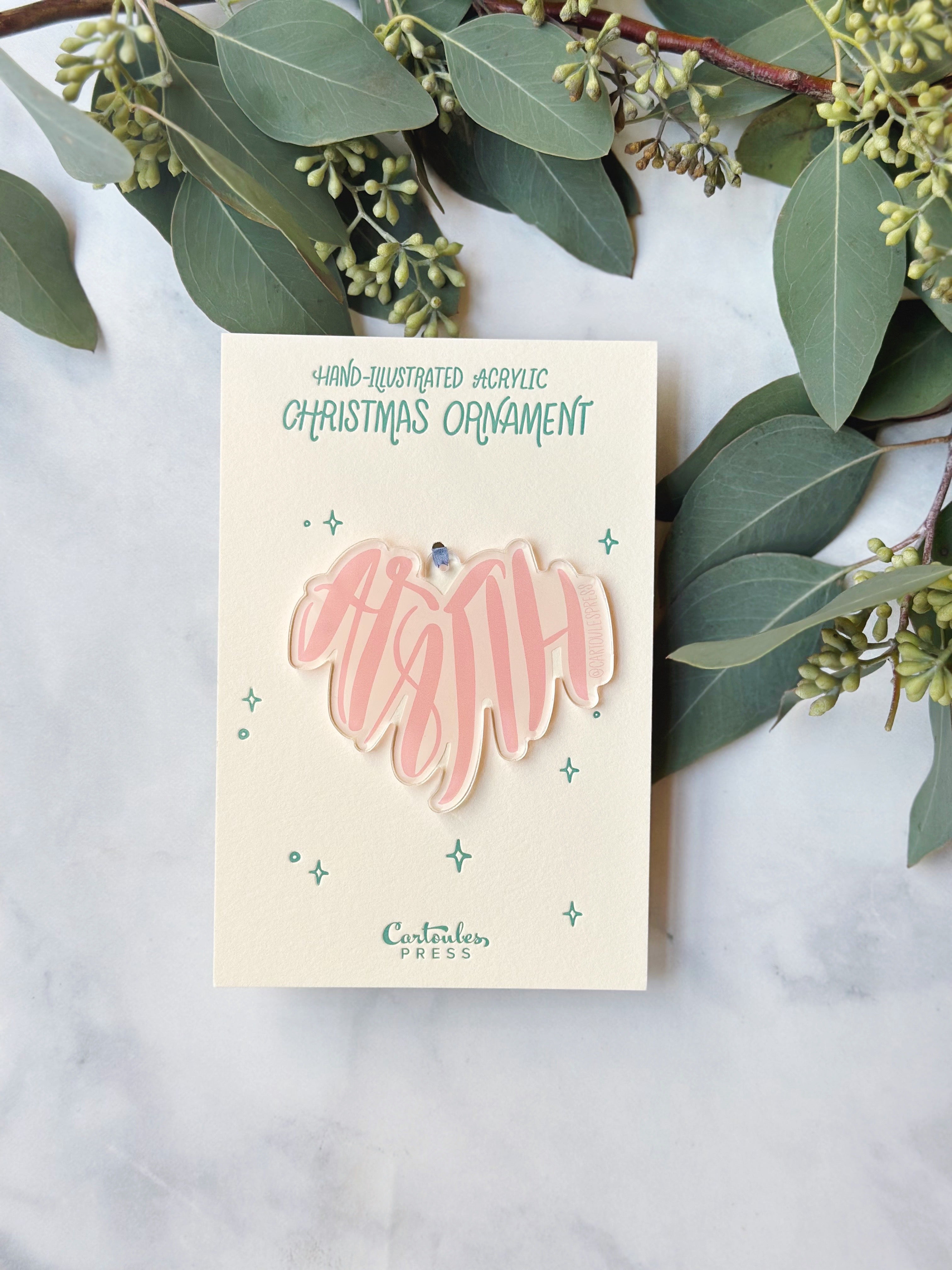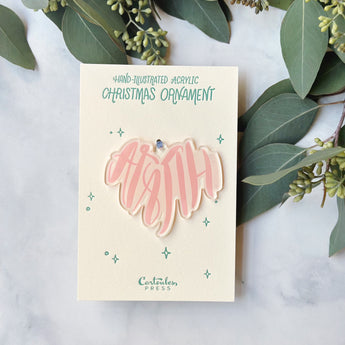 This acrylic ornament features the hand-lettered "Agape" or Love in Greek. Give your loved one this "love" ornament this Christmas!