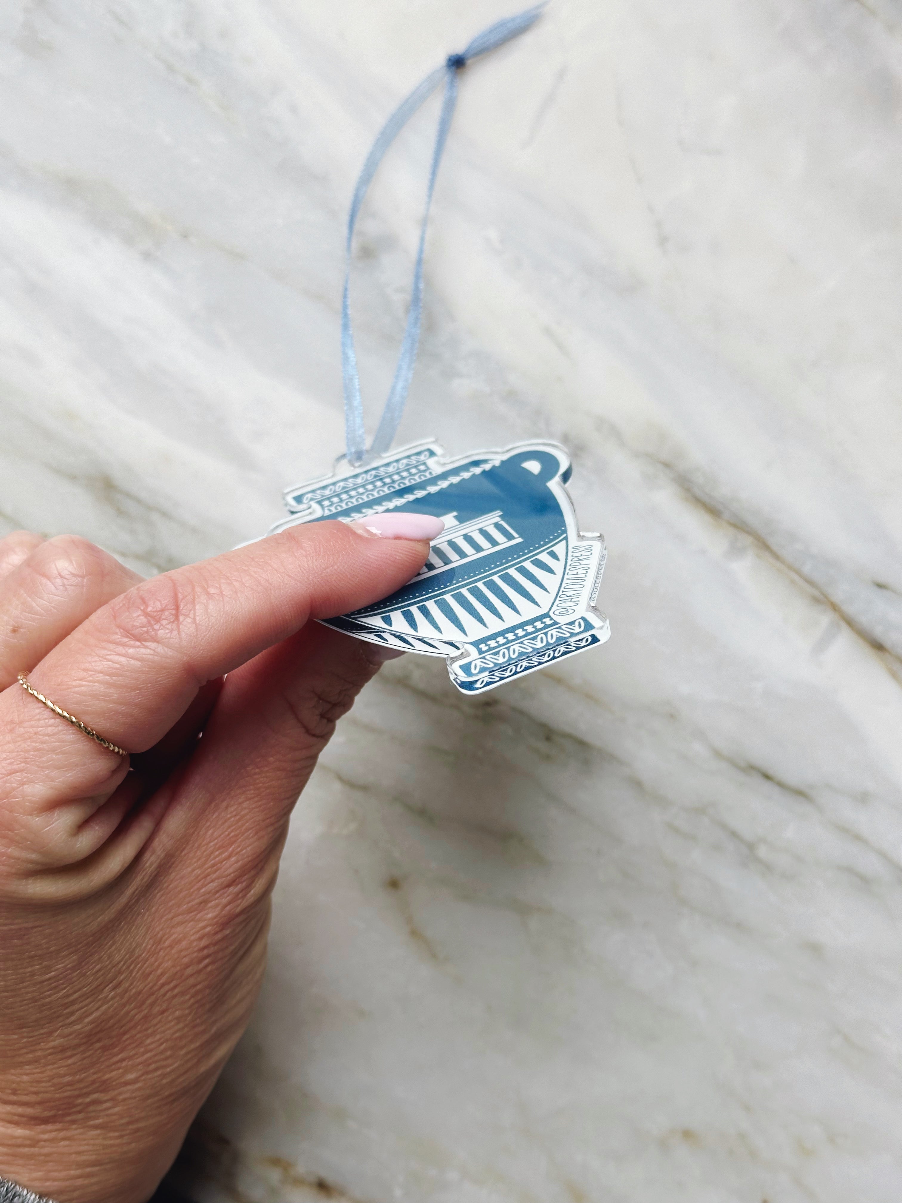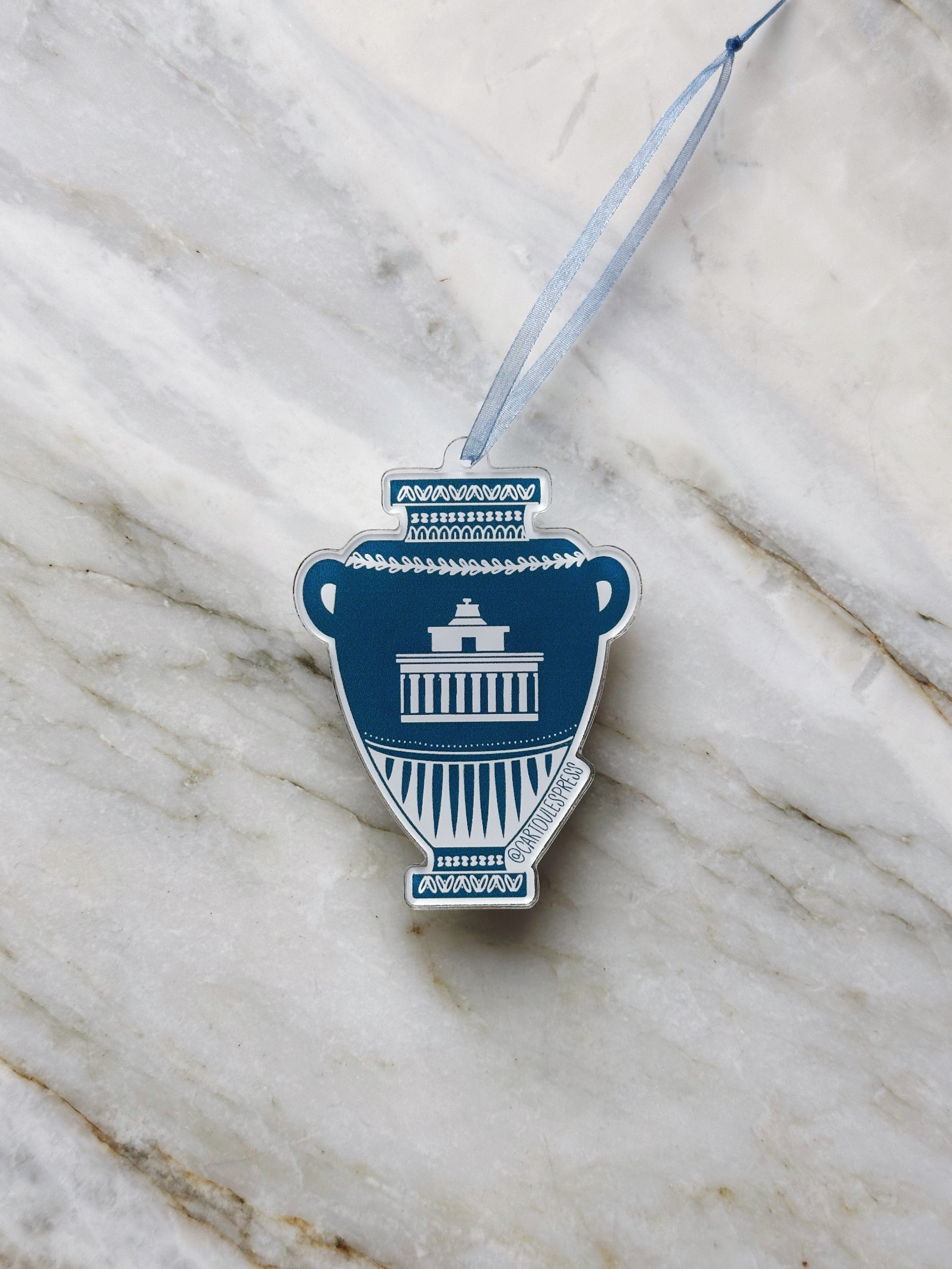 This ornament is from our collection of vase designs, which feature various Greek symbols and illustrations - our own Cartoules Press interpretation of the ancient Greek amphora.