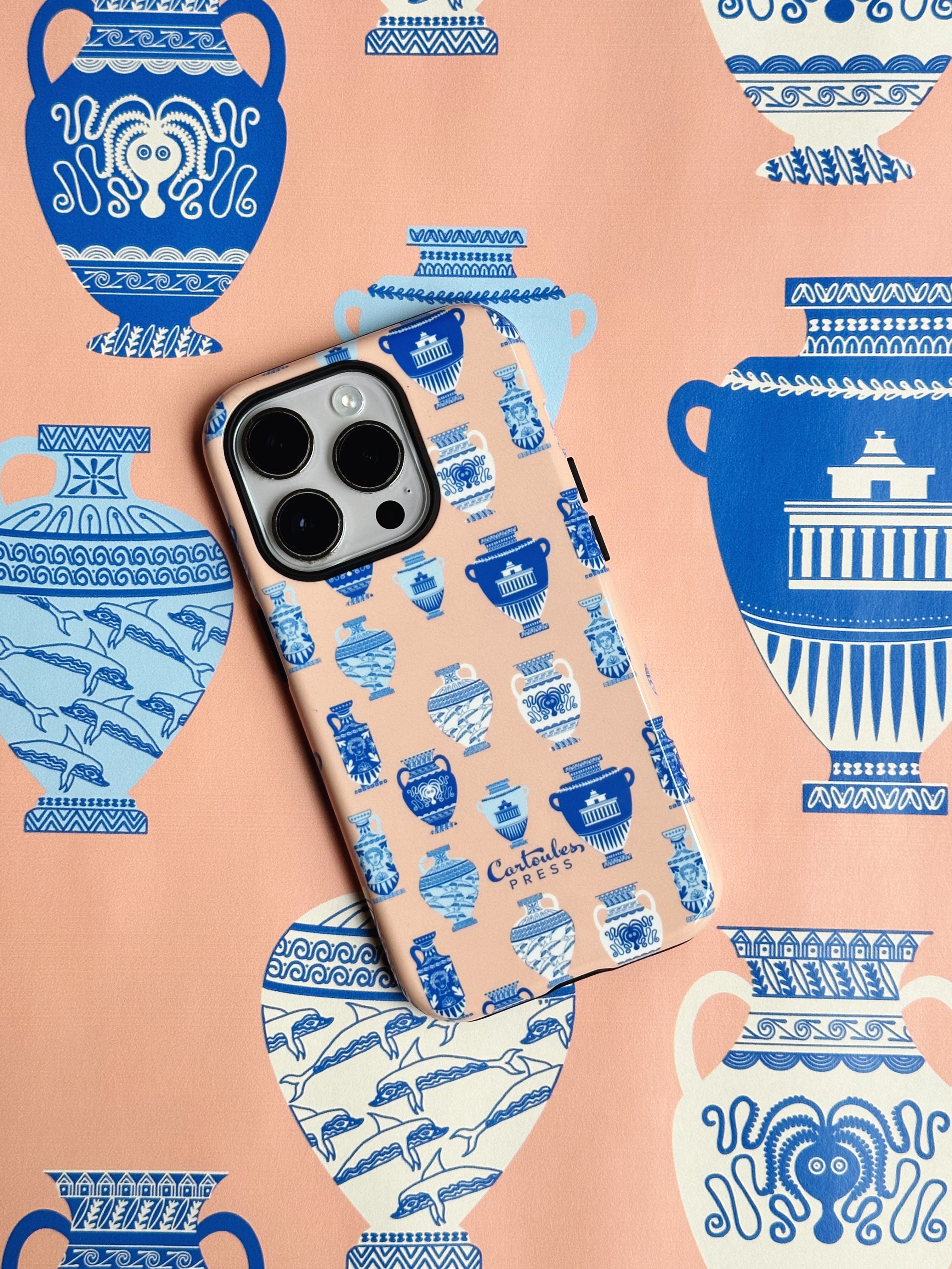 Protect your phone with this iPhone case featuring our interpretation of ancient Greek Amphora vase designs. All elements are hand-lettered by Cartoules Press.
