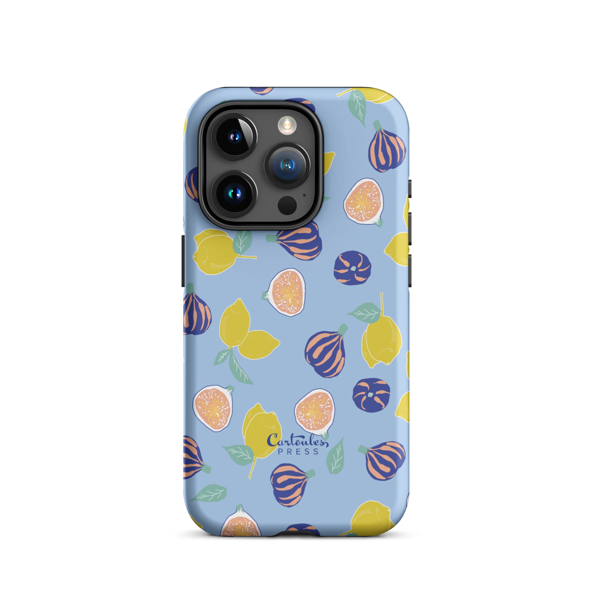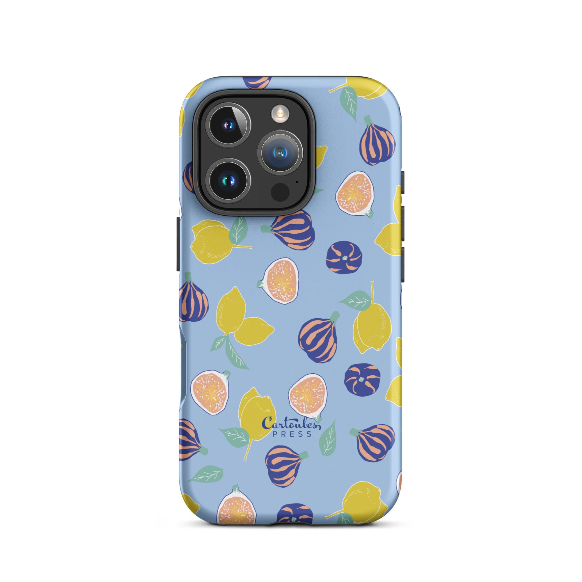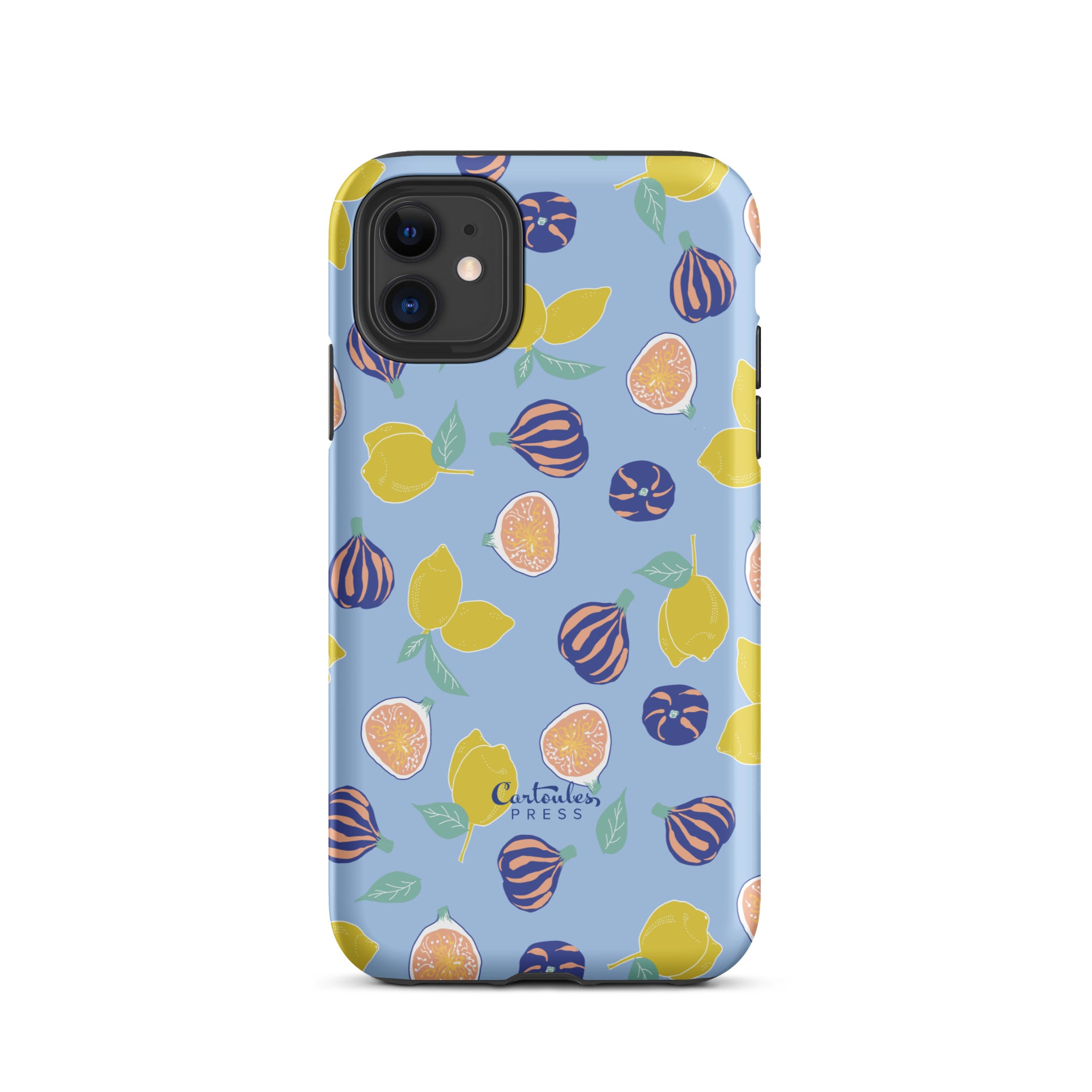 Protect your phone with this Tough iPhone case featuring hand-illustrated lemons and figs by Cartoules Press. The perfect combo for a Greek summer!