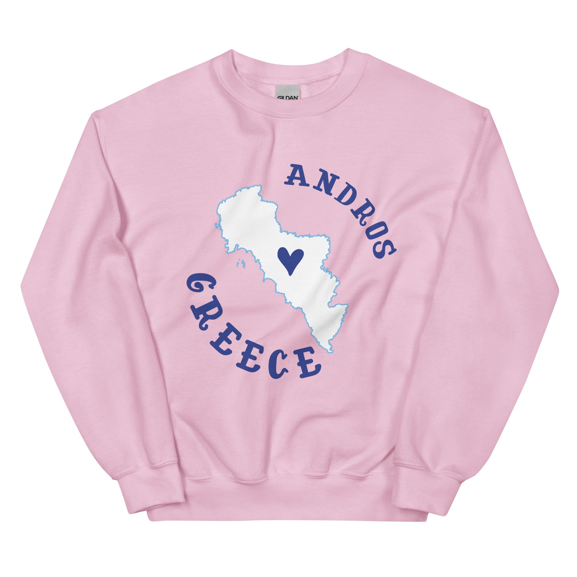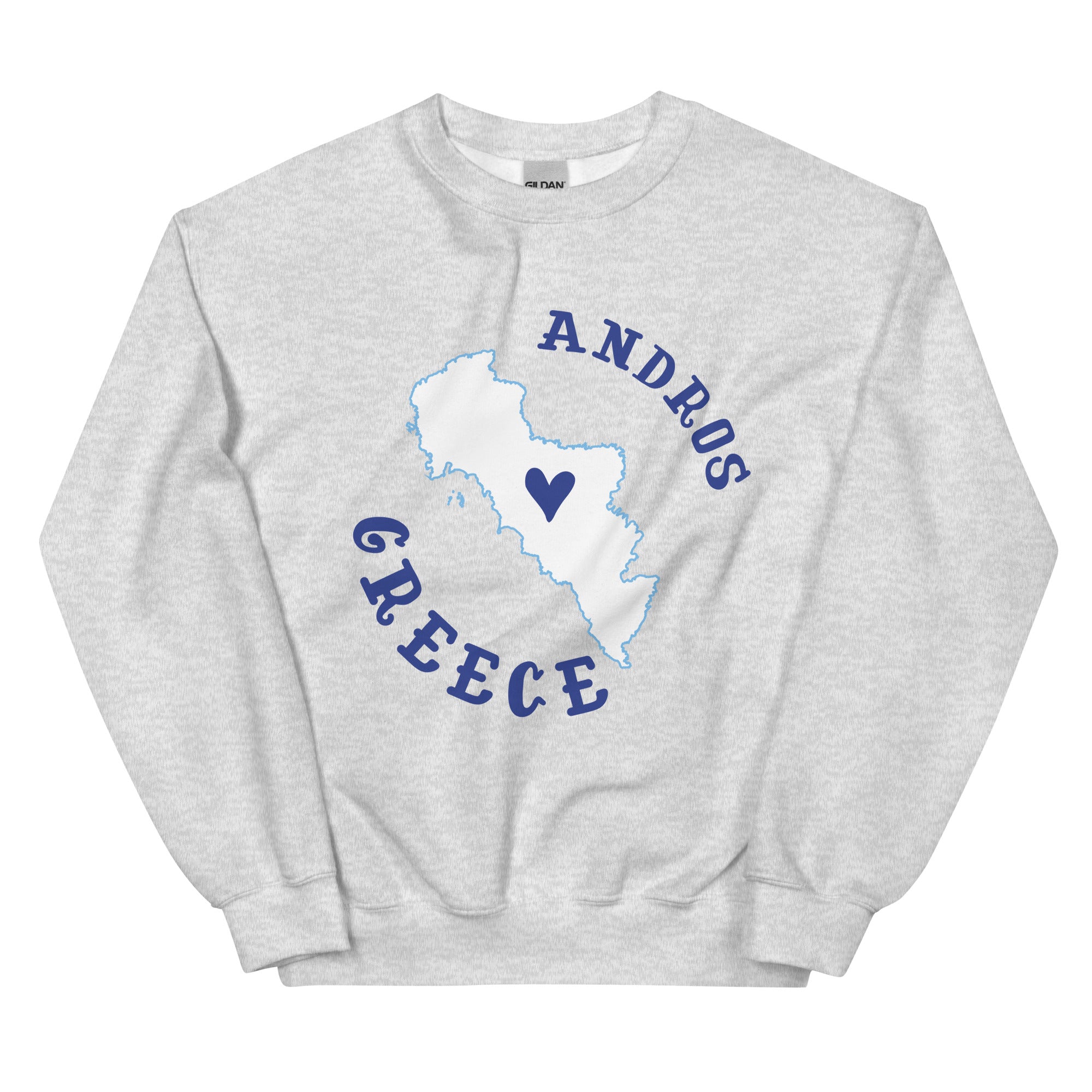 This collection celebrates the diverse geography of Greece - from its sun-washed islands (nisia) to its vibrant cities (polis). Each sweatshirt features a minimalist map silhouette of a beloved Greek destination, centered with a heart to mark the place that feels like home.