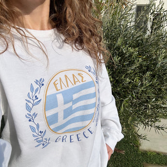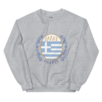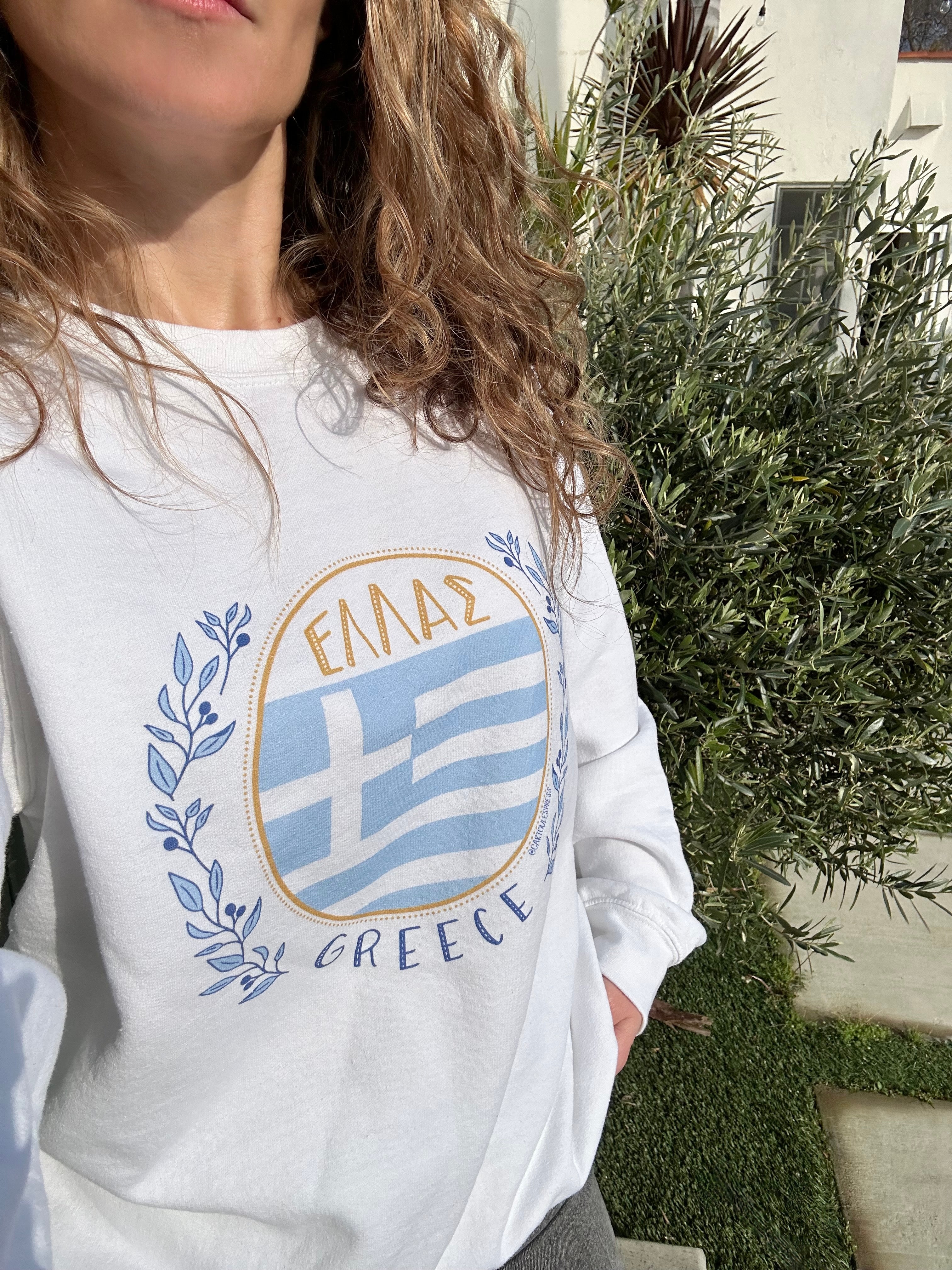 Cozy up with this crewneck sweatshirt and show your Greek pride! All elements are hand illustrated by Cartoules Press.