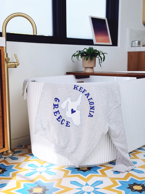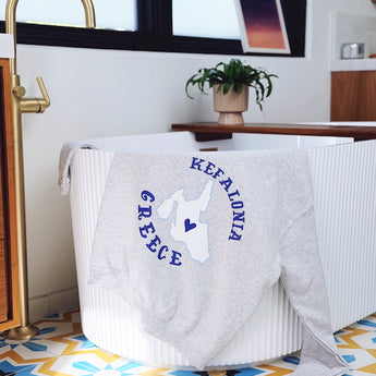 This collection celebrates the diverse geography of Greece - from its sun-washed islands (nisia) to its vibrant cities (polis). Each sweatshirt features a minimalist map silhouette of a beloved Greek destination, centered with a heart to mark the place that feels like home.