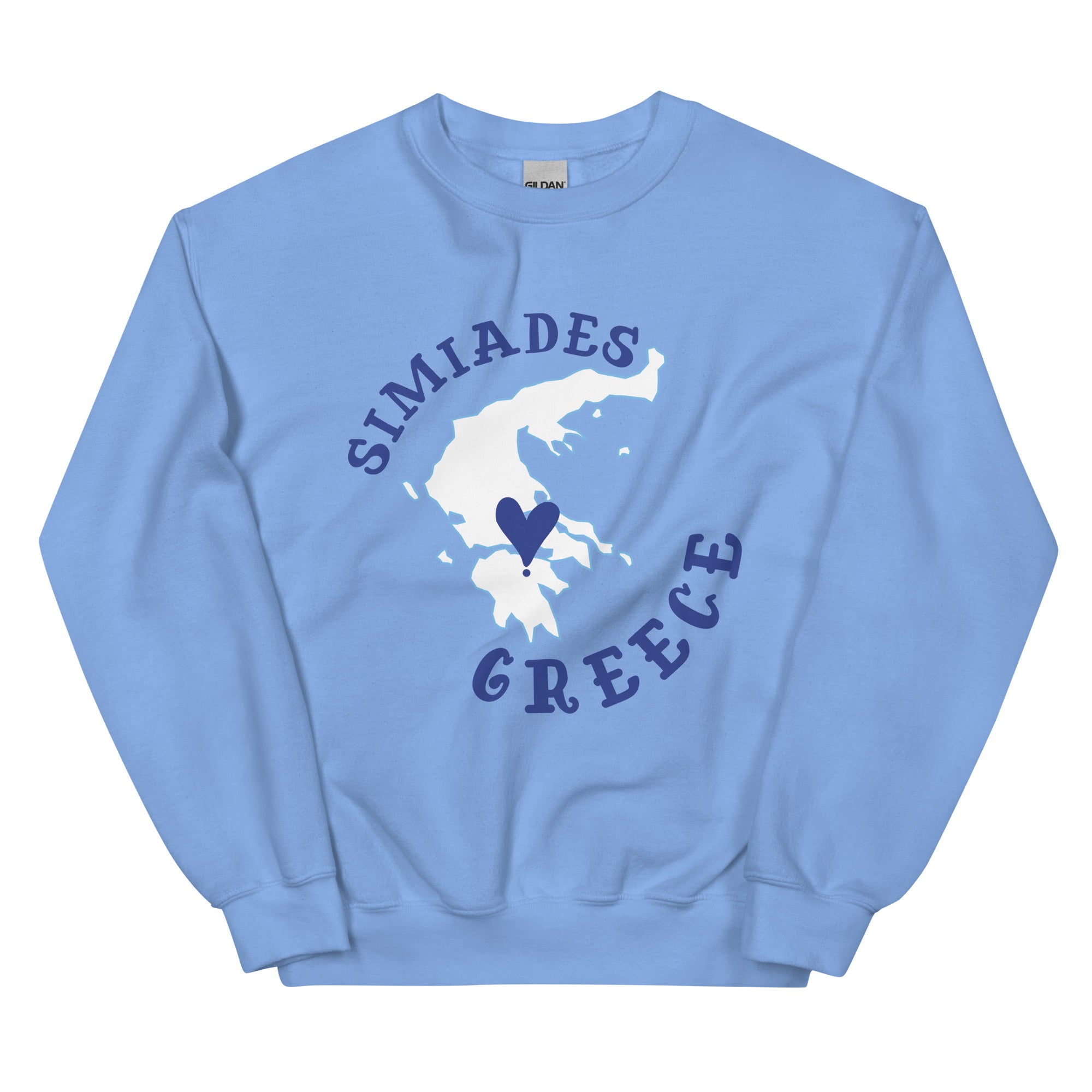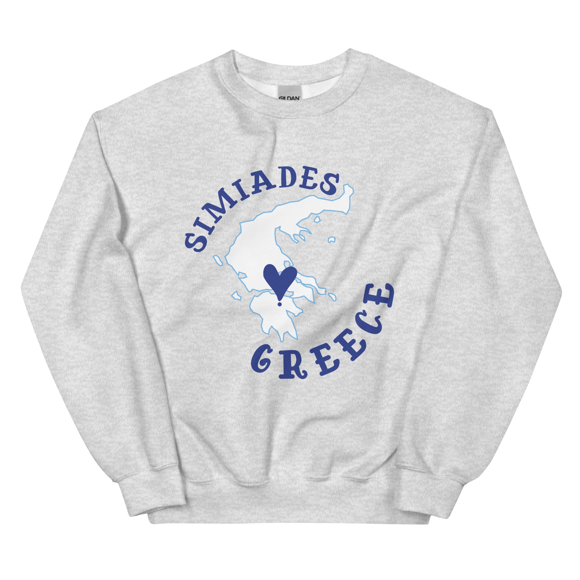 This collection celebrates the diverse geography of Greece - from its sun-washed islands (nisia) to its vibrant cities (polis). Each sweatshirt features a minimalist map silhouette of a beloved Greek destination, centered with a heart to mark the place that feels like home.