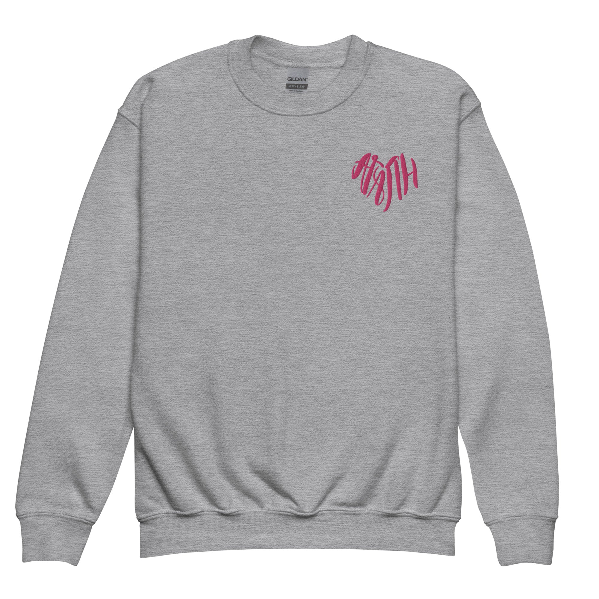This cozy Agape Sweatshirt feels extra soft to the touch like a warm loving hug. The hand-lettered word "Agape" or Love in Greek, is embroidered over the left chest in a fluorescent pink thread.