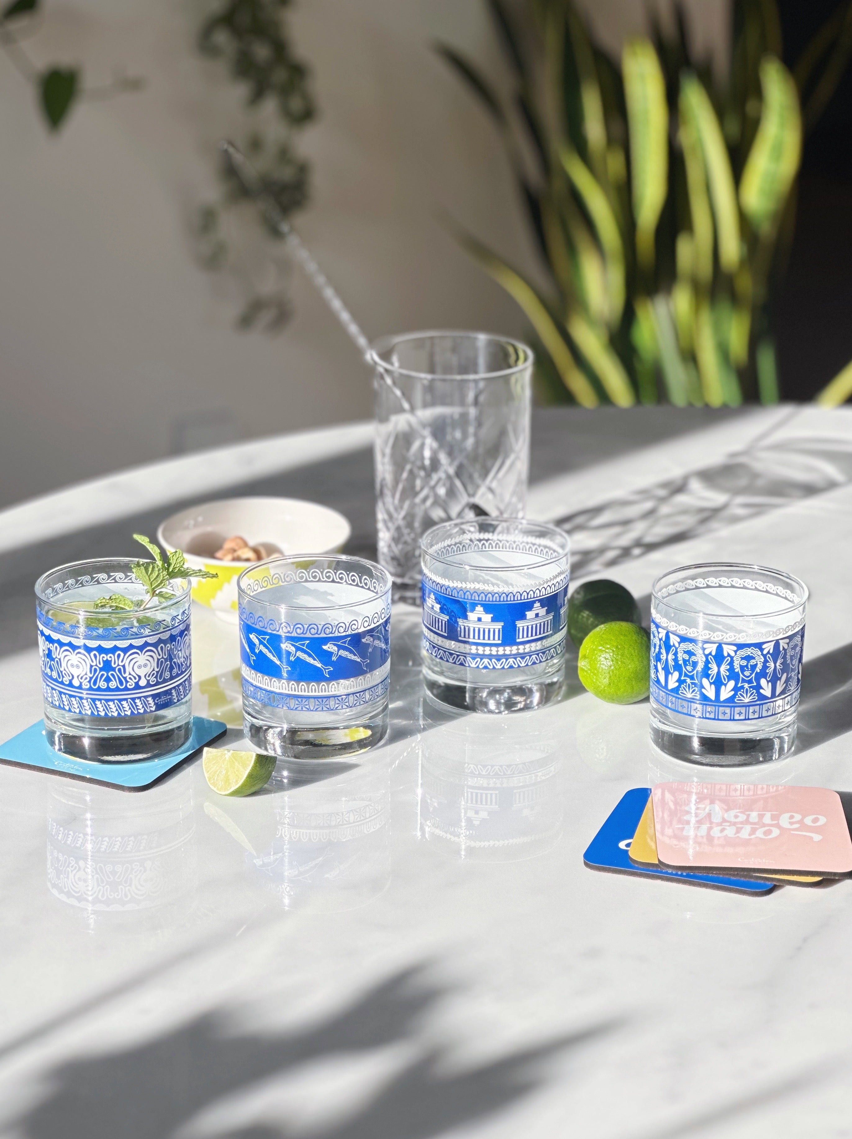 This Octopus Glass is the ideal gift for whiskey and cocktail lovers. Inspired by vintage blue and white cocktail glasses depicting scenes from ancient Greece and Rome, our glasses feature our own hand-illustrated designs, inspired by our love for Greece. This listing is for ONE (1) glass. Glasses are sold separately. With four unique designs in the collection, grab them all for a full set!