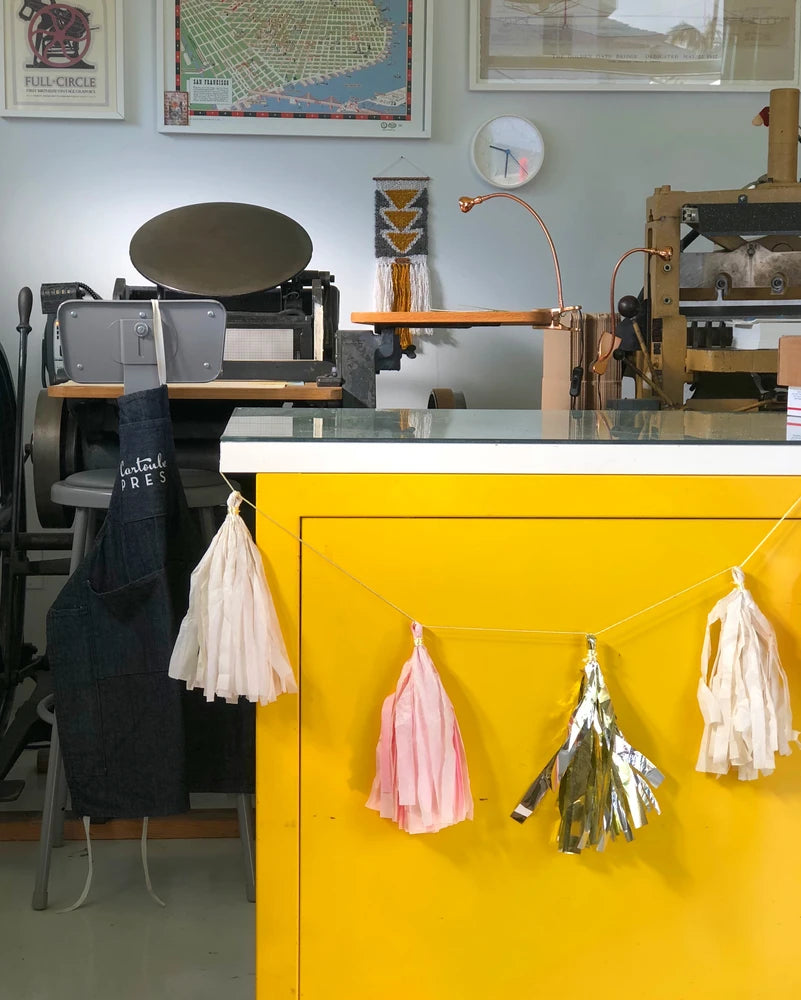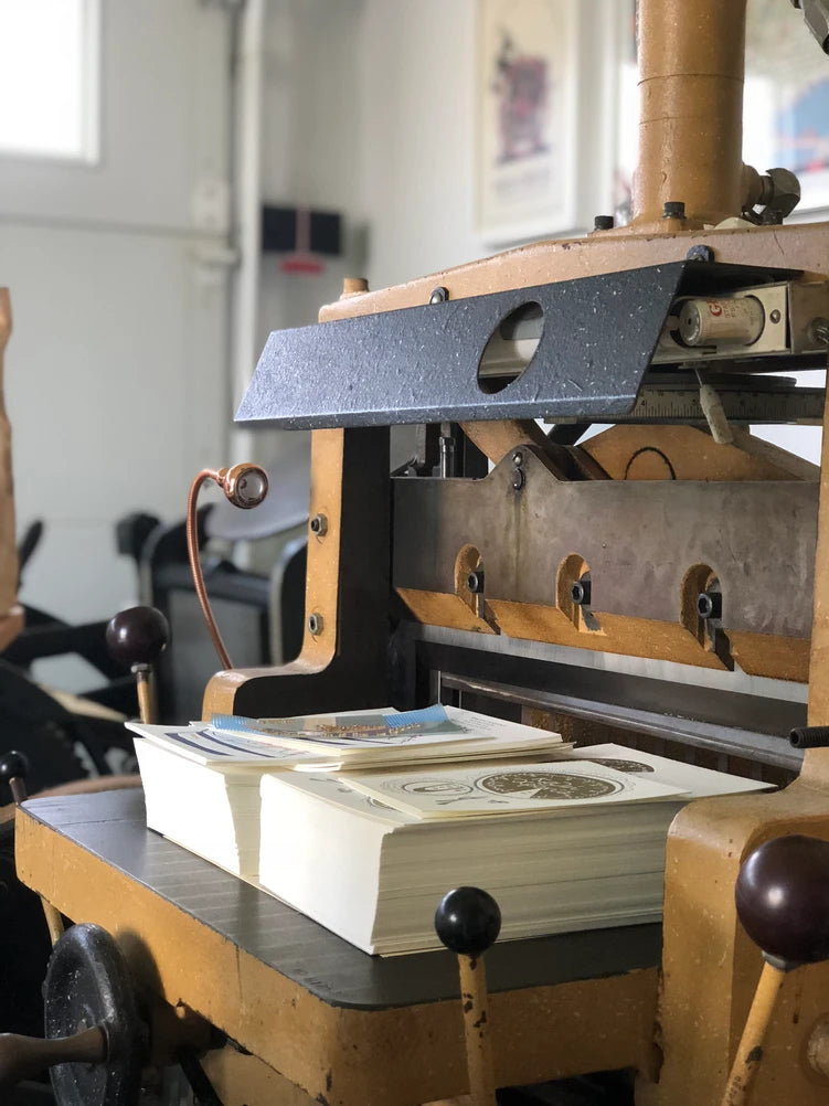 I've been a long-time paper fanatic ever since I could pick up a pair of scissors and make things with my hands. I've always appreciated the art of quality-made stationery and the craft of letterpress. When my husband and I began planning our wedding in Greece years ago, we longed for bilingual Greek and English invitations, but couldn’t find what we were searching for. After designing and printing our own invitations together, and having enjoyed our experience so much, we decided to set up shop in sunny Long Beach, California.