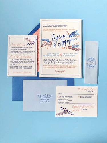 What an exciting season you're in - congrats! I love working one on one with my couples to create a unique wedding invitation suite - something that tells a story about the big day to come and have your guests saying, "yes, I wouldn't miss it!" We'll work with you to create invitations that will be treasured keepsakes forever. All of our designs can be customized to your wedding needs, so keep scrolling to see examples of our work - or reach out for something totally custom!