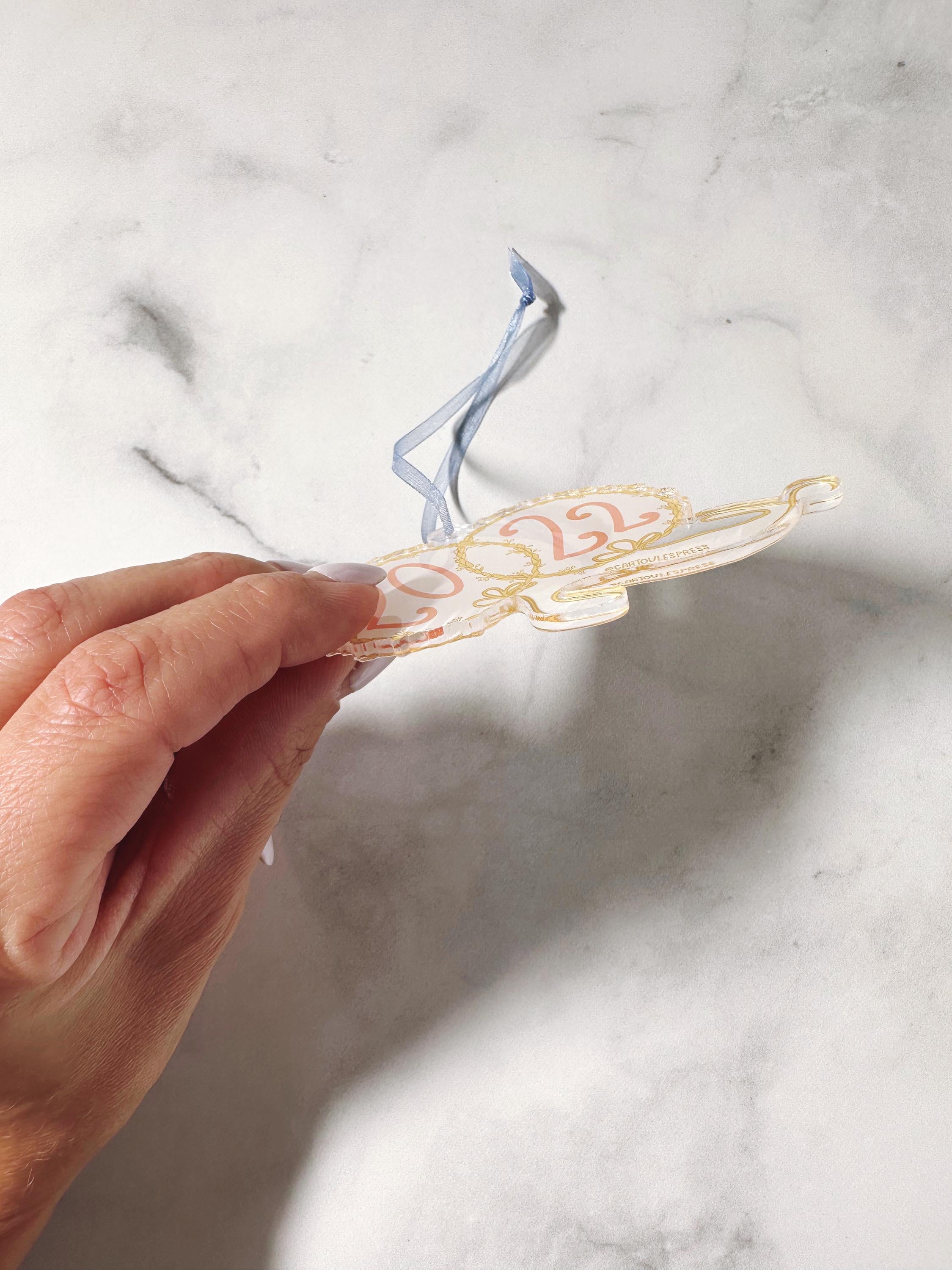 These stefana, or traditional Greek wedding crowns, signify the bond between the Bride and Groom and are worn during a Greek Orthodox wedding ceremony. This ornament makes the perfect gift for the couple who recently married or will marry this year (choose from 2022, 2023, 2024 or 2025). This is a keepsake they'll cherish forever, and it'll remind them of their special day! Featuring hand-lettering and illustration by Cartoules Press.